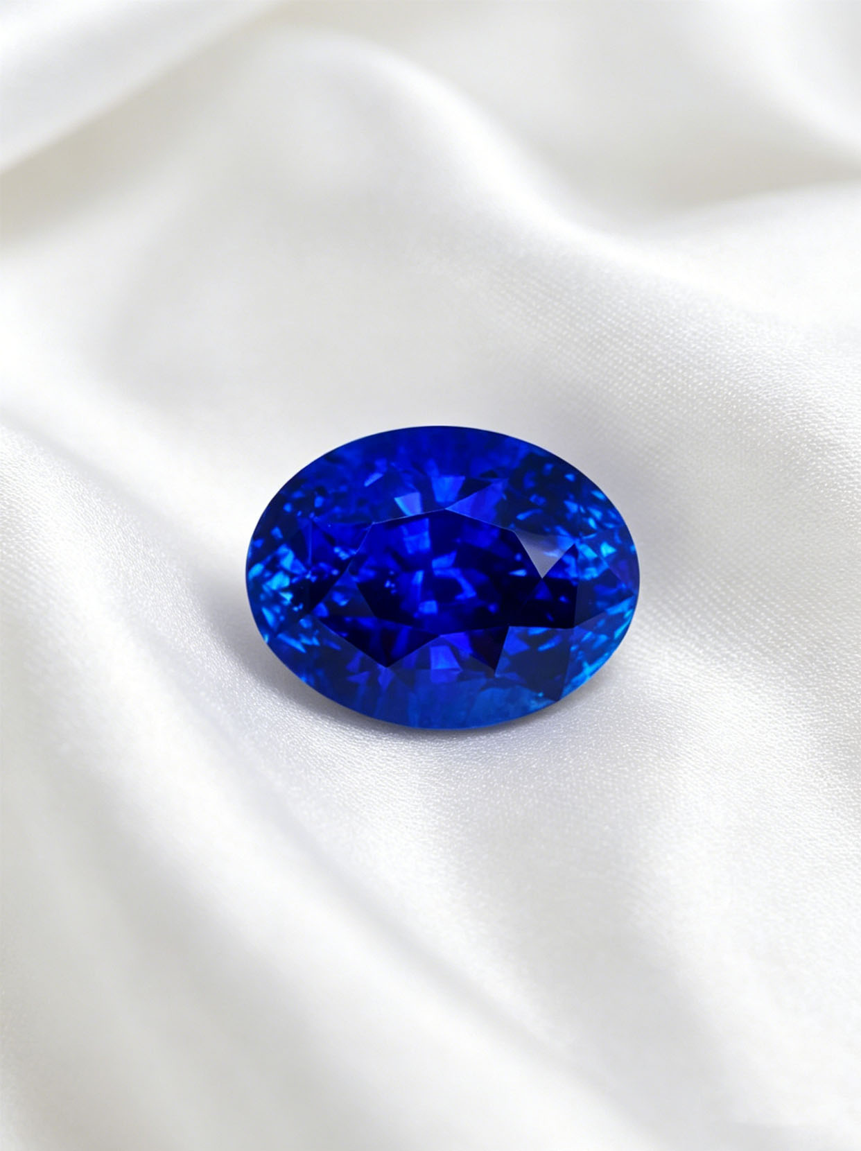印度克什米尔蓝宝石。颜色呈矢车菊的蓝色,也就是微带紫的靛蓝色。颜色的明度大,色鲜艳。有雾状的包裹体的具乳白色反光效应。一直被誉为蓝宝石中的极品。
