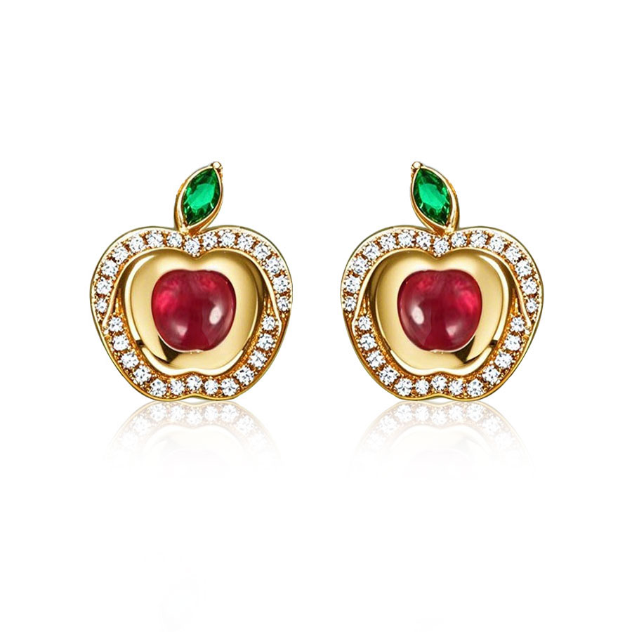 圆润的红宝石,恰似苹果的甜蜜果核,凝聚着热情与活力,它不仅为作品增添了一份奢华与高贵,更寓意着佩戴者心中那颗炽热的爱与对生活的热情。