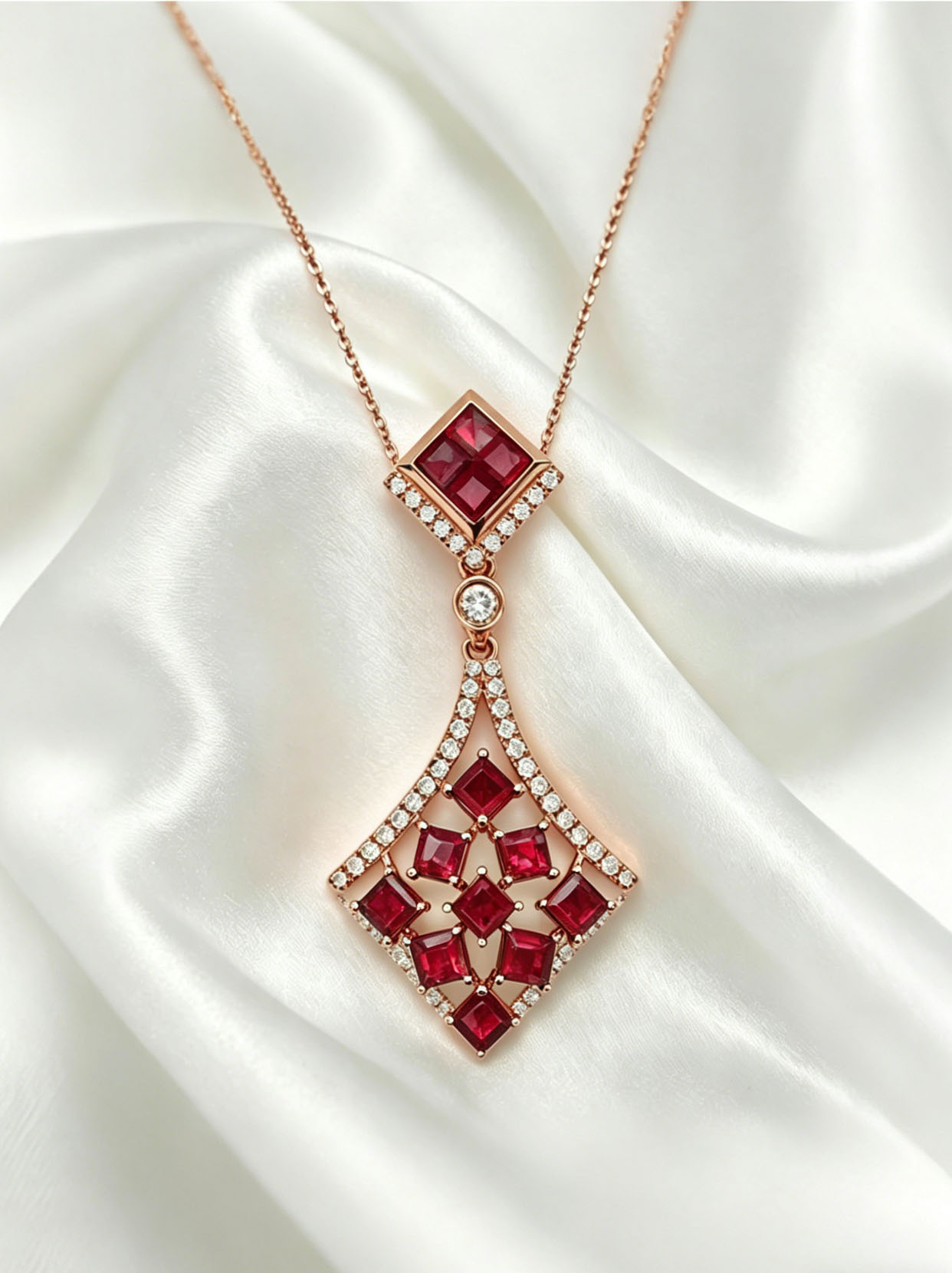 • 天然红宝钻石吊坠